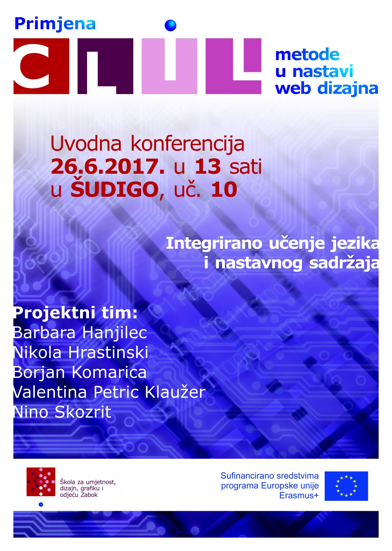 U ponedjeljak, 26. lipnja 2017. godine u Školi za umjetnost, dizajn, grafiku i odjeću Zabok održano je predstavljanje projekta “Primjena CLIL metode u nastavi web dizajna” koji se u okviru programa Erasmus+ financira sredstvima Europske unije.
