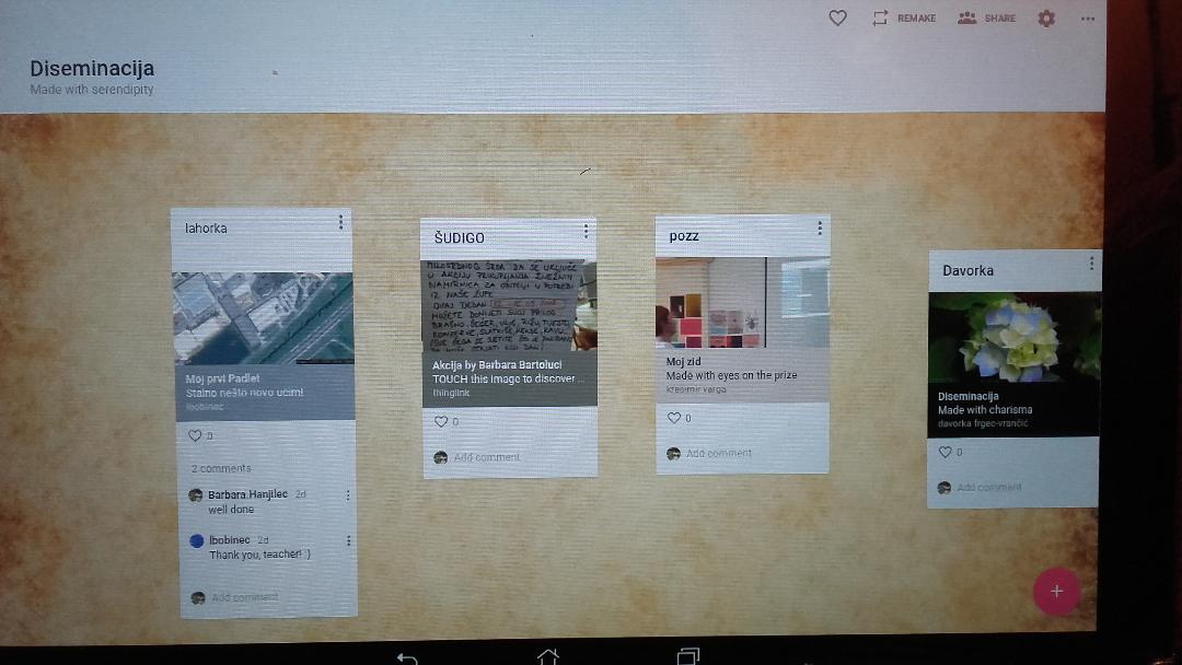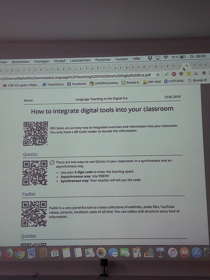 Nakon kratkog uvoda, nastavnici su sudjelovali u radionici izrade i čitanja QR kodova te im je prof. Hanjilec pokazala sat povijesti likovne umjetnosti u kojem se primjenjuje CLIL metoda i rad s kodovima. Nastavnici su se zatim upoznali i s Padletom kao online oglasnom pločom te su izradili vlastiti Padlet.
