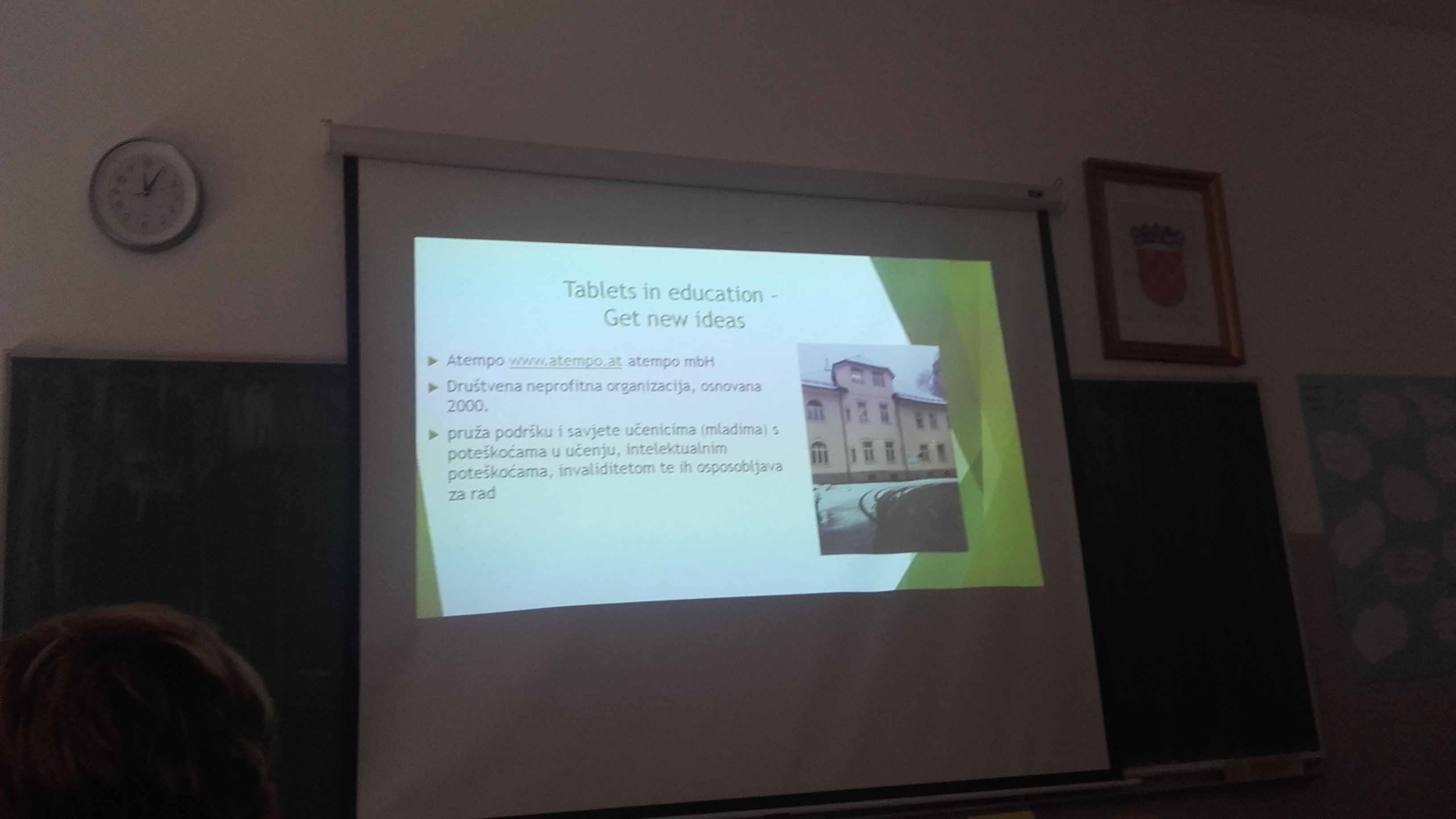 Cilj edukacije Tablets in educaton – get new ideas je poboljšati znanja i vještine nastavnika te približiti nove informacijsko – komunikacijske tehnologije učenicima motivirajući ih pomoću aplikacija i online alata kao što su Padlet, Quizizz, Socrative, Actionbound, Mylessons, LessonUP, Bookcreative itd.