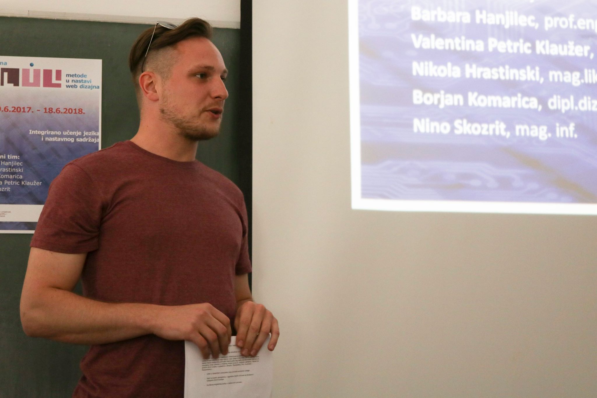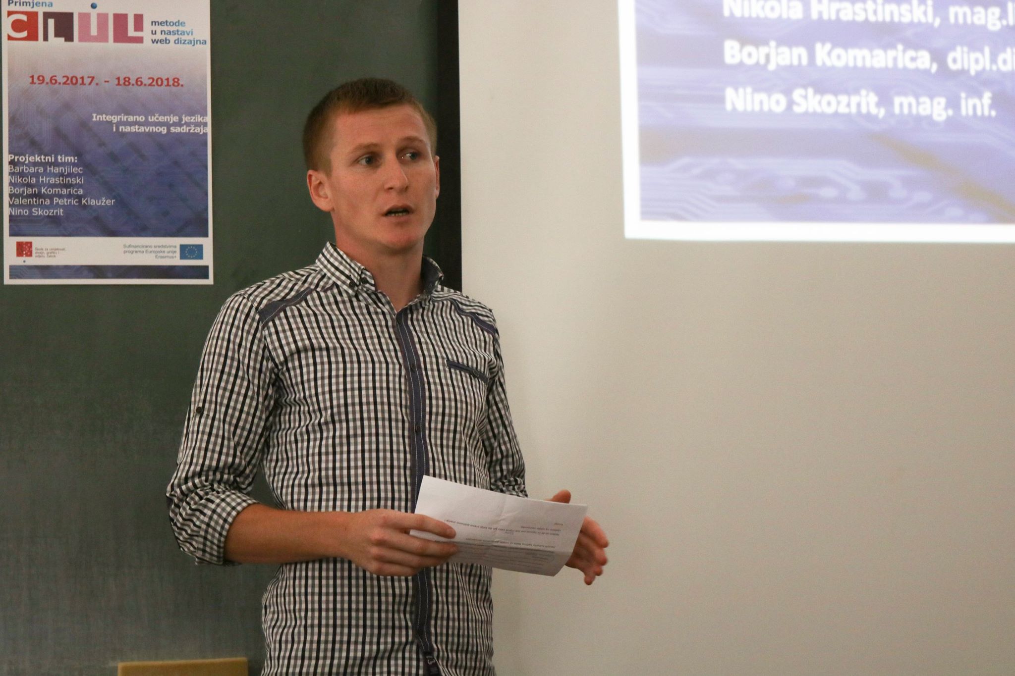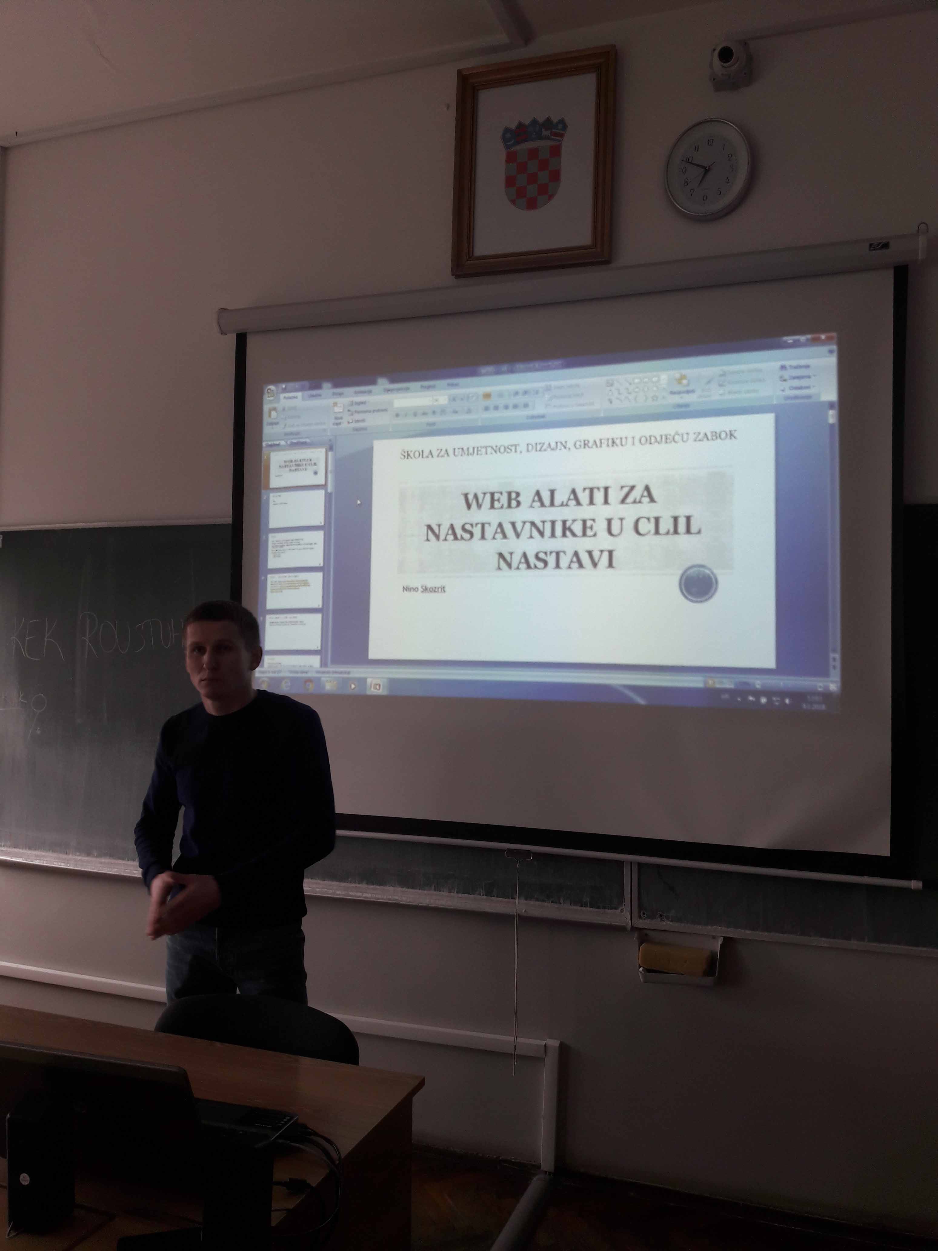 Nastavnik se na početku osvrnuo na važnost uvođenja CLIL nastave u zanimanje web dizajner, a potom je prikazao naučene web alate i njihovu primjenu u CLIL nastavi.