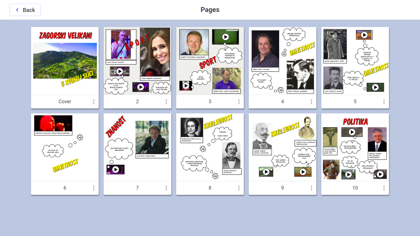 Na razini Hrvatske proveo se projekt Poznati Slavonci i Zagorci koji su dali obol hrvatskoj kulturi u kojem su učenici surađivali s učenicima Prve Gimnazije iz Osijeka i izradili su eKnjige koristeći Book Creator. Projekt je dogovoren na mobilnosti u Grazu, a koordinatorica projekta je prof.Valentina Petric Klaužer koja je u projekt uključila učenike drugih i trećih razreda.