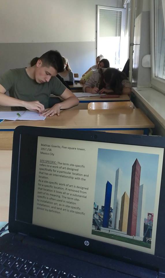 Na Likovnoj umjetnosti učenici su se na prvom satu upoznali sa skulpturama druge polovice 20. stoljeća, dok su drugi sat dobiveno znanje primijenili na kratkom eseju. Prilikom pisanja služili su se mobilnim uređajima kako bi imali pristup e-Pojmovniku radi korištenja stručne terminologije na engleskom jeziku.